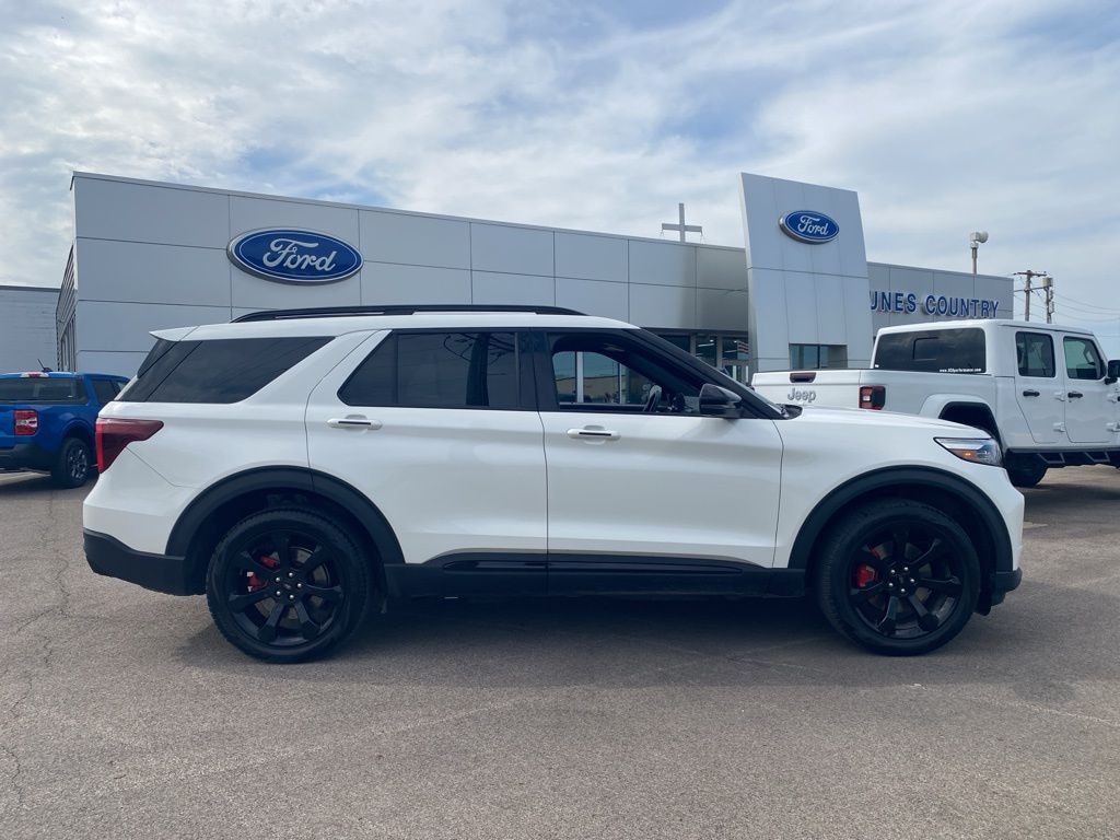 NAVIGATION, 3RD ROW SEATING, ADAPTIVE CRUISE, REMOTE START, ADVANCED SAFETY Tech, HEATED SEATS, HEATED STEERING WHEEL, HEATED/COOLED SEATS, REAR HEATED SEATING, PANORAMIC SUNROOF, REAR PARK ASSIST, BACKUP CAMERA, SIRIUSXM RADIO, BLUETOOTH, Explorer ST, 4D Sport Utility, 4WD, Star White Metallic Tri-Coat, Ebony w/Leather Htd/Ventilated Sport Captain's Chairs, 2 Additional Speakers, 360-Degree Camera w/Split View, 6 Speakers, Active Park Assist 2.0, AM/FM radio: SiriusXM, AM/FM Stereo, Auto-Dimming Rearview Mirror (Interior), Compass, Driver door bin, Emergency communication system: SYNC 3 911 Assist, Ford Co-Pilot360 Assist+, FordPass Connect, Front Bucket Seats, Front Center Armrest, Front Parking Sensors, Front Rain-Sensing Wipers, Front reading lights, Hands-Free Foot-Activated Liftgate, Illuminated entry, Leather steering wheel, Memory Driver's Seat, Memory seat, Outside temperature display, Overhead console, Passenger door bin, Passenger vanity mirror, Power Liftgate, Power Tilt/Telescoping Steering Column, Radio: B&O Sound System by Bang & Olufsen, Rear reading lights, Rear window defroster, Rear window wiper, Reverse Brake Assist, SelectShift Capability w/Paddle Shifters, Speed-Sensitive Wipers, Split folding rear seat, Sport steering wheel, Steering wheel mounted audio controls, SYNC 3/Apple CarPlay/Android Auto, Tachometer, Telescoping steering wheel, Third Row PowerFold (Folds Flat), Tilt steering wheel, Trip computer, Universal Garage Door Opener (UGDO), Variably intermittent wipers, Wireless Charging Pad.