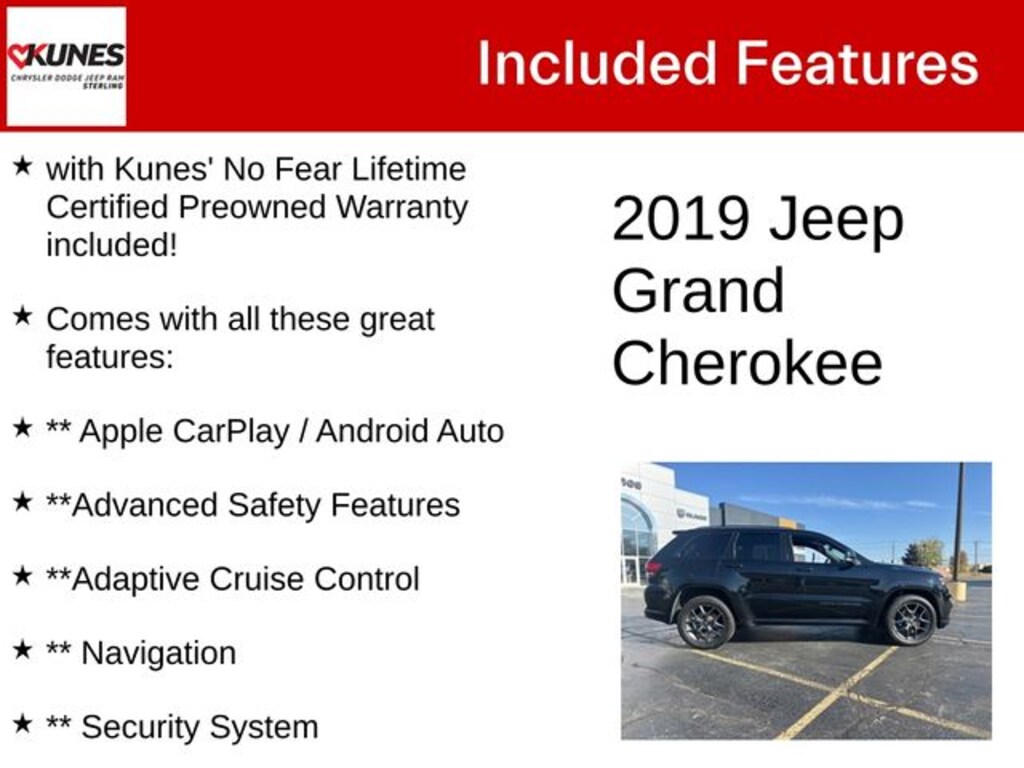 Diamond Black Crystal Pearlcoat 2019 Jeep Grand Cherokee Limited X Limited X with Kunes' No Fear Lifetime Certified Preowned Warranty included!, Comes with all these great features:, ** Apple CarPlay / Android Auto, **Advanced Safety Features, **Adaptive Cruise Control, ** Navigation, ** Security System, ** Heated Seats, **Heated Steering wheel, ** Steering Wheel Controls, ** Roof Rack, ** Premium Wheels, ** Keyless Entry, ** Automatic Headlights, ** Bluetooth, ** Back up Camera, **Rear Park Assist, **SIRIUS XM, Remote Start, Grand Cherokee Limited X, 4D Sport Utility, 4WD, Diamond Black Crystal Pearlcoat, Black Leather, Jeep Advanced Active Safety Group, Limited X Package, Navigation System, Quick Order Package 2BG Limited X. Recent Arrival!