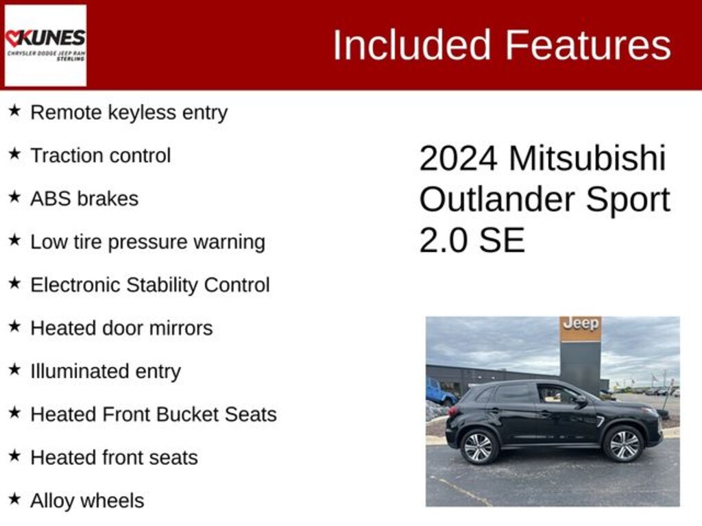 Black 2024 Mitsubishi Outlander Sport with Kunes' No Fear Lifetime Certified Preowned Warranty included!