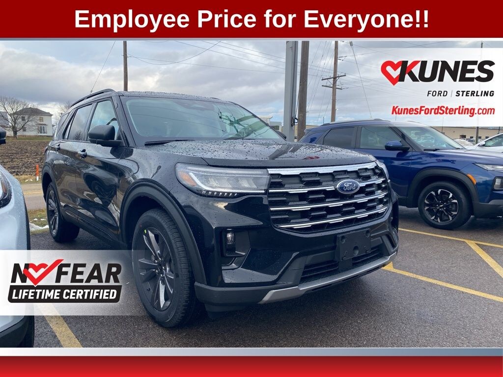 Agate Black Metallic 2026 Ford Explorer Active 4WD, 3rd row seats: bench, 4-Wheel Disc Brakes, 6 Speakers, 8 USB Ports, ABS brakes, Active Badging, Active Comfort Package, Active Noise Cancellation, Air Conditioning, Alloy wheels, AM/FM radio: SiriusXM with 360L, AM/FM Stereo, Apple CarPlay/Android Auto, Auto High-beam Headlights, Automatic temperature control, Black Lower Bodyside Cladding with Chrome Accent, Black Roof-Rack Side Rails, Brake assist, Bumpers: body-color, Compass, Delay-off headlights, Driver door bin, Driver vanity mirror, Dual front impact airbags, Dual front side impact airbags, Electronic Stability Control, Emergency communication system: 911 Assist, Equipment Group 200A Standard Package, Exterior Parking Camera Rear, Four wheel independent suspension, Front anti-roll bar, Front Bucket Seats, Front Center Armrest, Front dual zone A/C, Front Fascia, Front License Plate Bracket, Front reading lights, Fully automatic headlights, Heated ActiveX Seating Material Captain's Chairs, Heated door mirrors, Heated Steering Wheel, Illuminated entry, Internet access capable: FordPass Connect 5G, Knee airbag, Low tire pressure warning, Manual-Folding Sideview Mirrors, Navigation System, Occupant sensing airbag, Outside temperature display, Overhead airbag, Overhead console, Panic alarm, Passenger door bin, Passenger vanity mirror, Power driver seat, Power Liftgate, Power steering, Power windows, Rear air conditioning, Rear anti-roll bar, Rear reading lights, Rear window defroster, Rear window wiper, Remote keyless entry, Remote Start System, Second Row Hvac Controls, SecuriCode Keyless Entry Keypad, Security system, Speed control, Speed-sensing steering, Speed-Sensitive Wipers, Split folding rear seat, Spoiler, Steering wheel mounted audio controls, Tachometer, Telescoping steering wheel, Tilt steering wheel, Traction control, Trip computer, Unique Cloth Captain's Chairs, Variably intermittent wipers, Vinyl-Wrapped Steering Wheel, Wheels: 18" Sparkle Silver-Painted Aluminum, Wheels: 20" Carbonized Gray-Painted Aluminum, 4WD. 20/27 City/Highway MPG