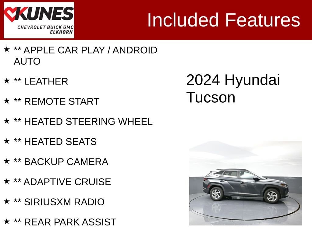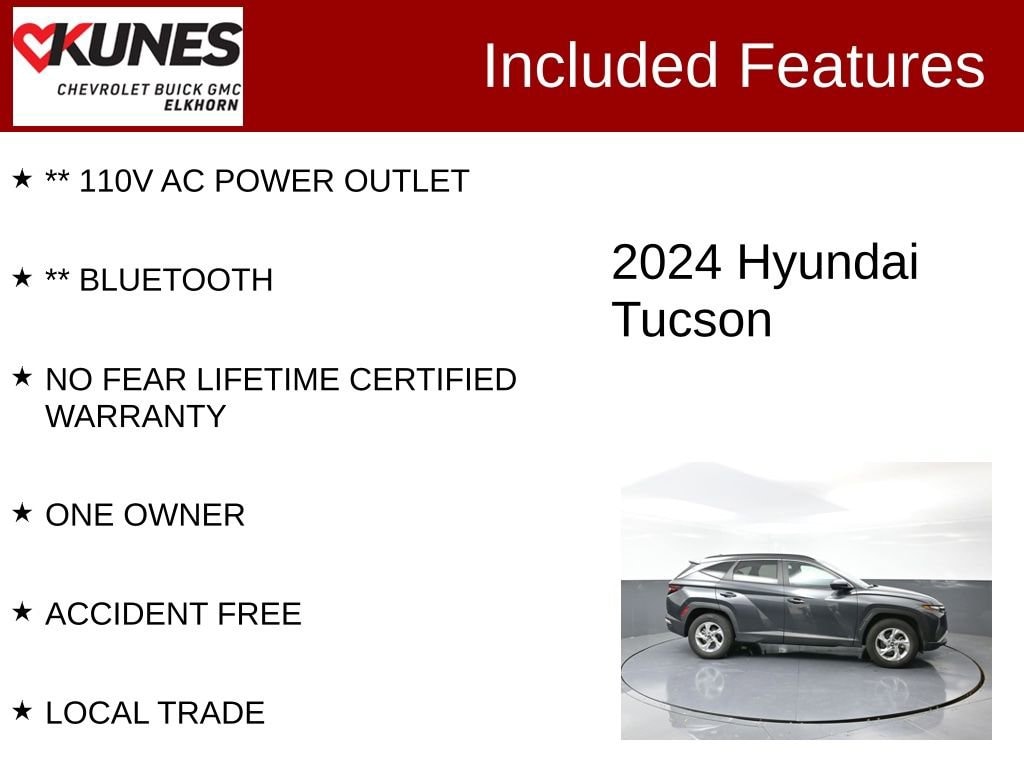 2024 Hyundai Tucson SEL 2.5L I4 DGI DOHC 16V LEV3-SULEV30 187hp 8-Speed Automatic with SHIFTRONIC AWD Clean CARFAX. CARFAX One-Owner. 23/29 City/Highway MPG