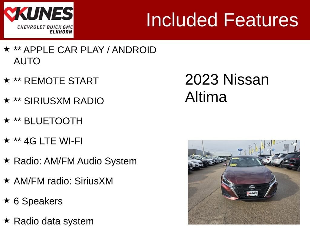 2023 Nissan Altima 2.5 SV 2.5L 4-Cylinder DOHC 16V CVT with Xtronic FWD CARFAX One-Owner. 27/39 City/Highway MPG